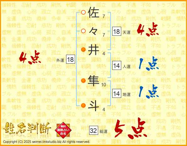 佐(7画)々(7画)井(4画) 隼(10画)斗(4画)