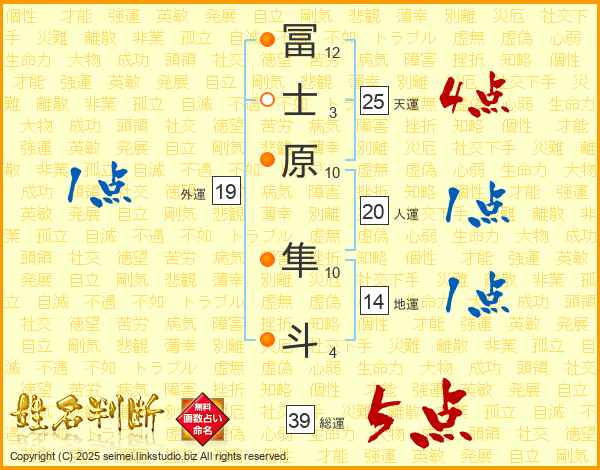 冨士原隼斗さんの総運は39画の5点!