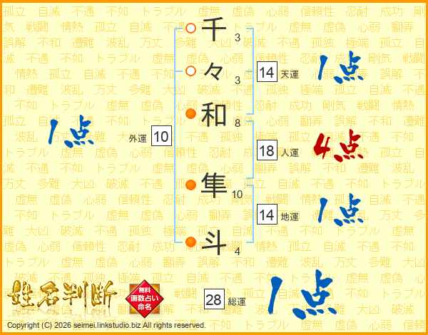 千(3画)々(3画)和(8画) 隼(10画)斗(4画)
