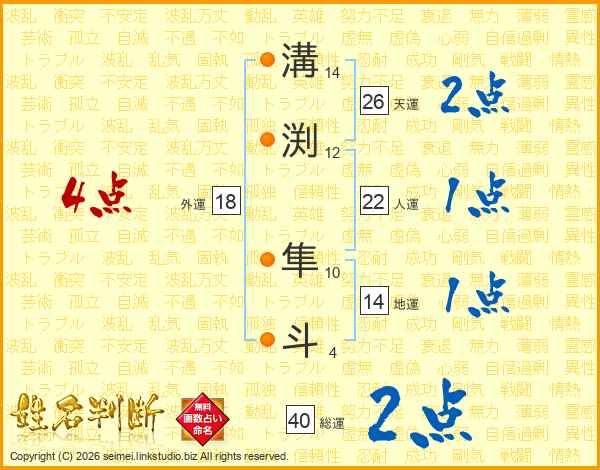 溝渕隼斗さんの天運は26画の2点!