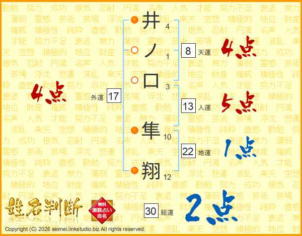 井ノ口隼翔さんの外運は17画の4点!
