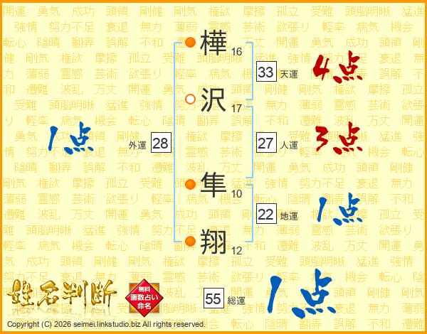 樺沢隼翔さんの天運は33画の4点!
