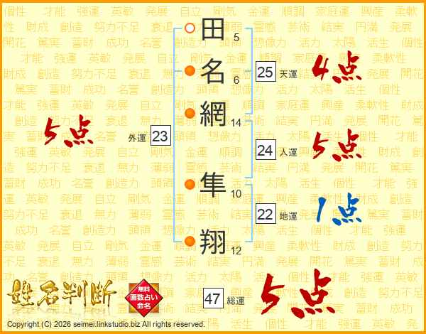 田名網隼翔さんの総運は47画の5点!