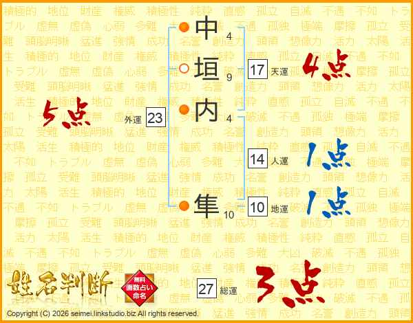 中垣内隼さんの総運は27画の3点!