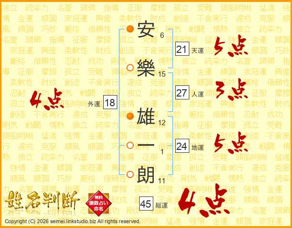 安樂雄一朗さんの総運は45画の4点!