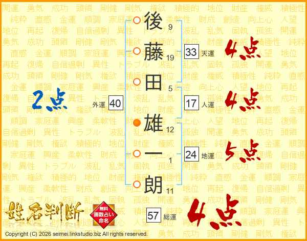 後藤田雄一朗さんの天運は33画の4点!