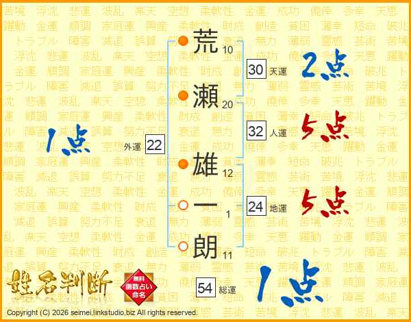 荒瀬雄一朗さんの総運は54画の1点!