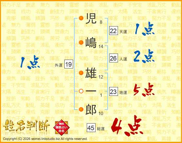 児嶋雄一郎さんの総運は45画の4点!