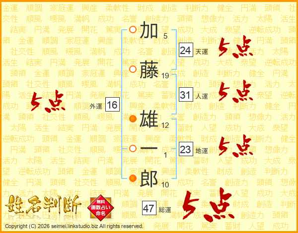 加藤雄一郎さんの総運は47画の5点!