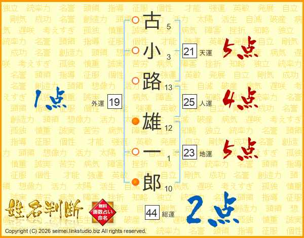 古小路雄一郎さんの総運は44画の2点!