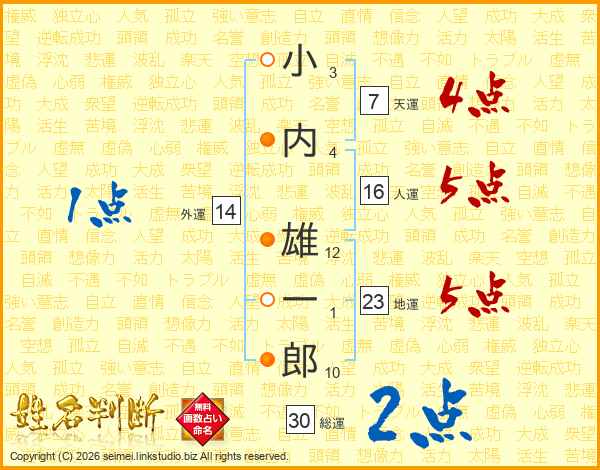 小内雄一郎さんの総運は30画の2点!