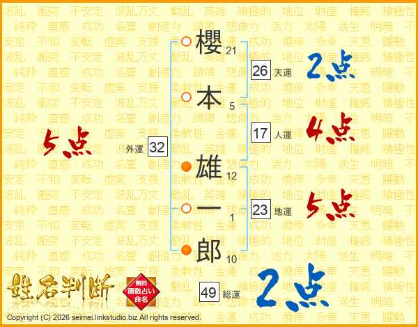 櫻本雄一郎さんの天運は26画の2点!