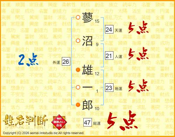 蓼沼雄一郎さんの総運は47画の5点!