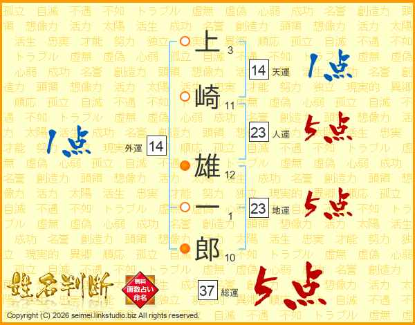 上崎雄一郎さんの人運は23画の5点!