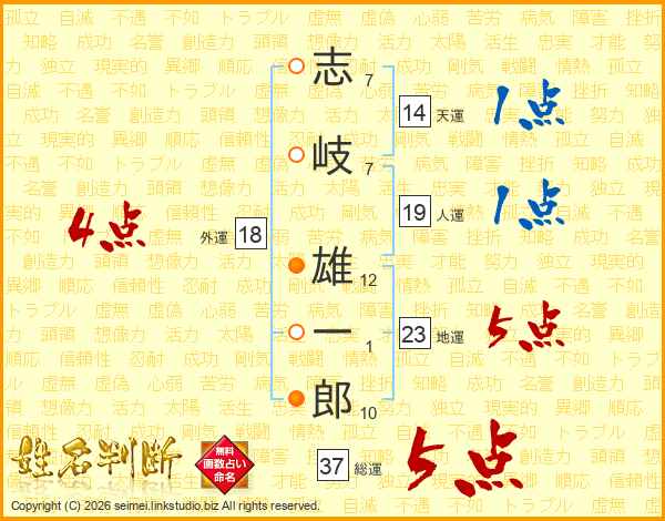 志岐雄一郎さんの総運は37画の5点!