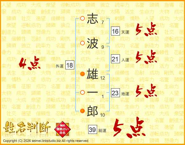 志波雄一郎さんの総運は39画の5点!