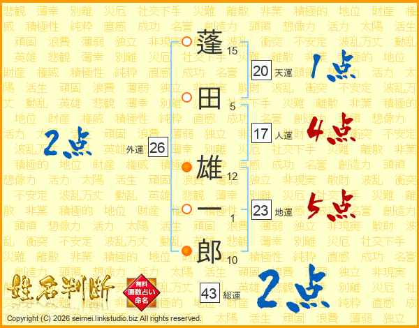 蓬田雄一郎さんの総運は43画の2点!