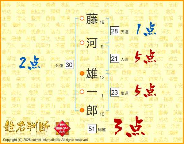 藤河雄一郎さんの地運は23画の5点!