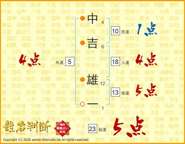 中吉雄一さんの総運は23画の5点!