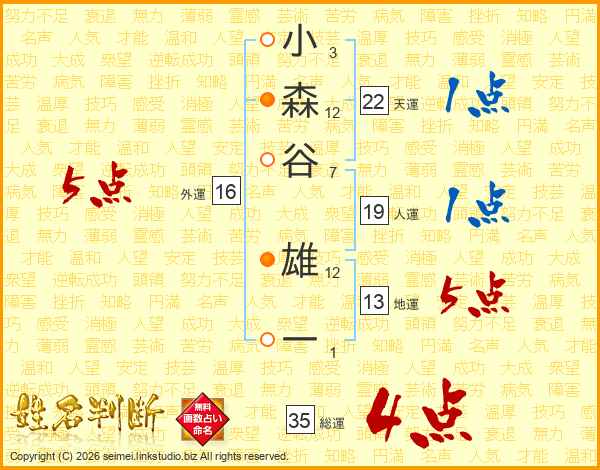 小森谷雄一さんの総運は35画の4点!