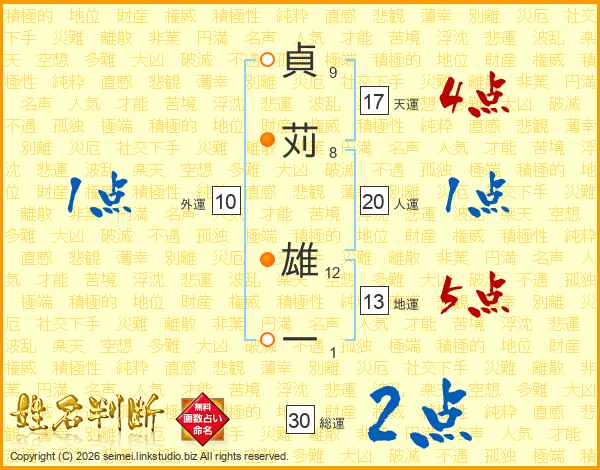 貞苅雄一さんの総運は30画の2点!