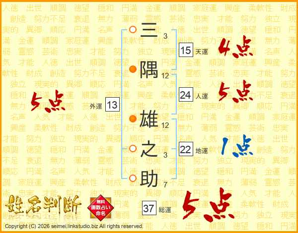 三隅雄之助さんの総運は37画の5点!