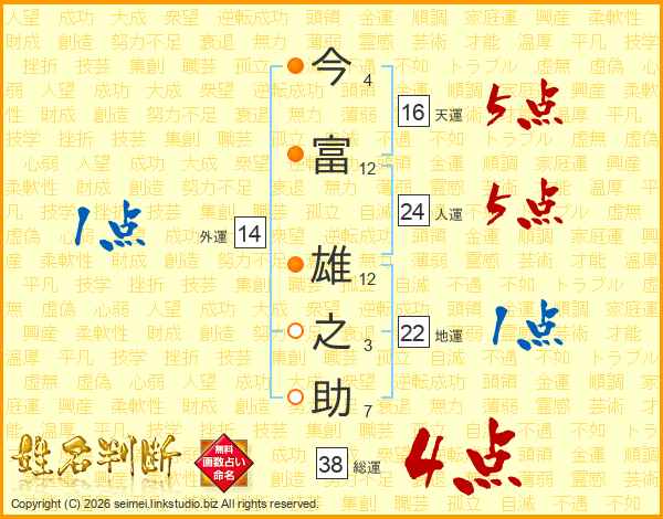 今富雄之助さんの総運は38画の4点!