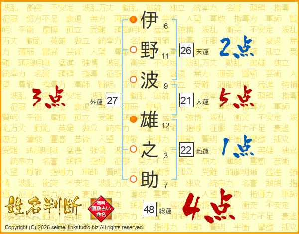 伊野波雄之助さんの総運は48画の4点!