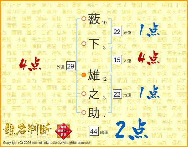 薮(19画)下(3画) 雄(12画)之(3画)助(7画)