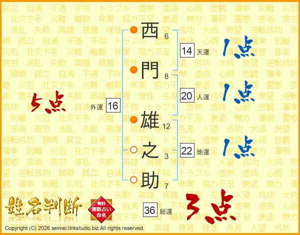 西門雄之助さんの総運は36画の3点!