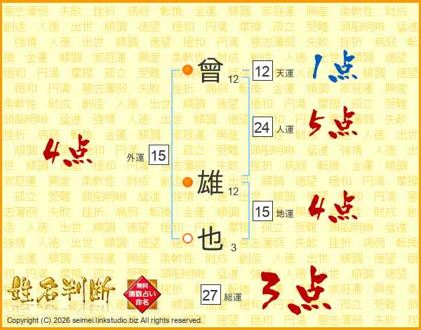 曾雄也さんの総運は27画の3点!