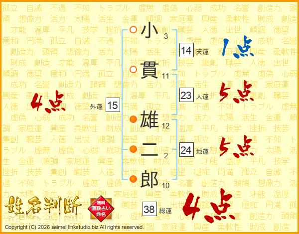 小貫雄二郎さんの総運は38画の4点!
