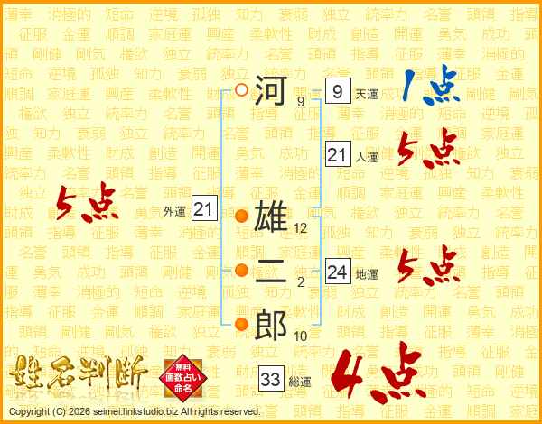 河雄二郎さんの総運は33画の4点!