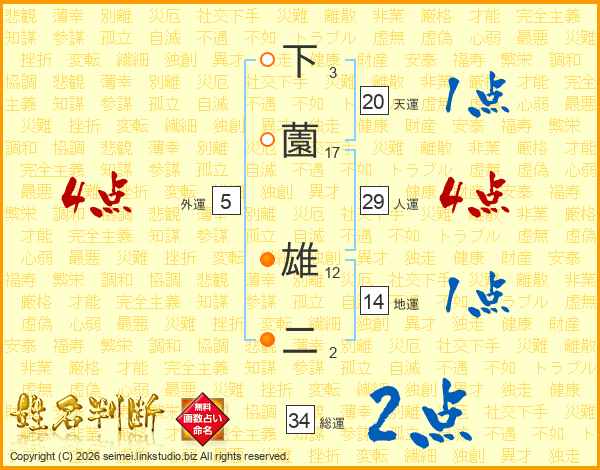 下薗雄二さんの人運は29画の4点!