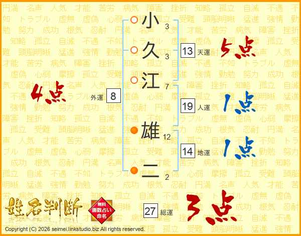 小久江雄二さんの天運は13画の5点!