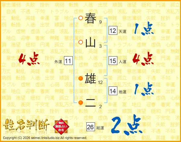 春山雄二さんの人運は15画の4点!