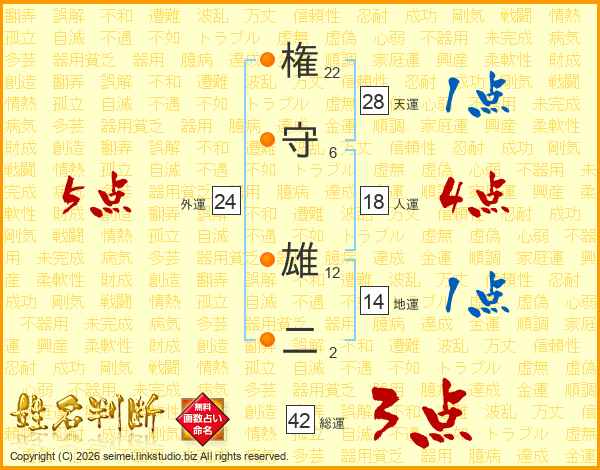 権守雄二さんの外運は24画の5点!