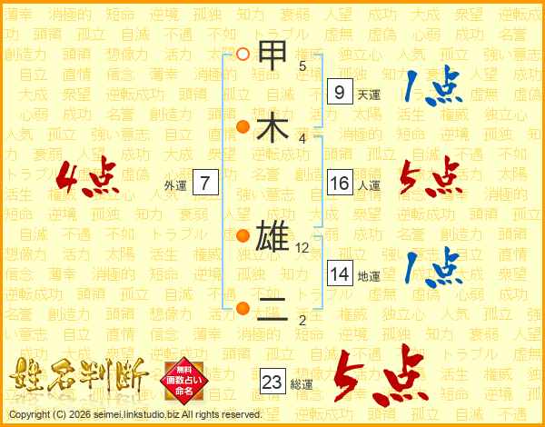 甲木雄二さんの総運は23画の5点!