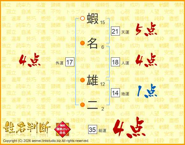 蝦名雄二さんの天運は21画の5点!