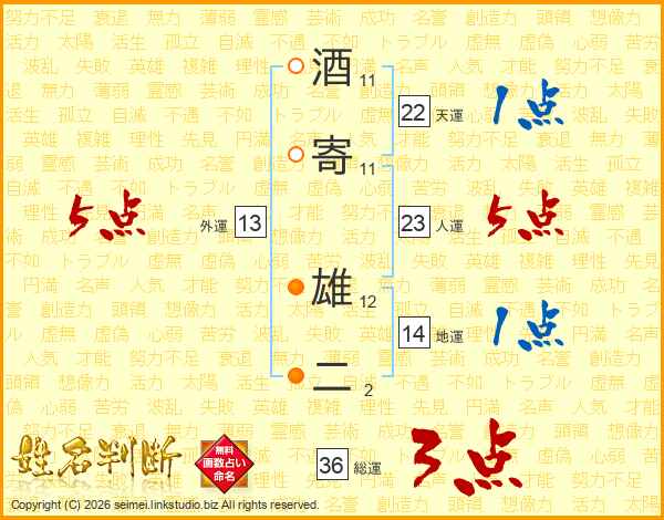 酒寄雄二さんの総運は36画の3点!