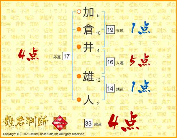 加倉井雄人さんの総運は33画の4点!