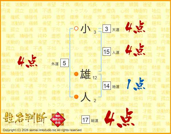 小雄人さんの総運は17画の4点!