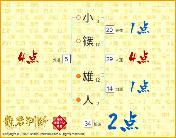 小篠雄人さんの総運は34画の2点!