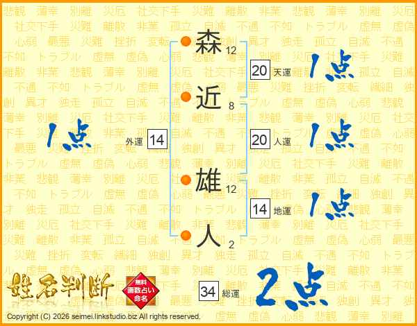 森近雄人さんの人運は20画の1点!