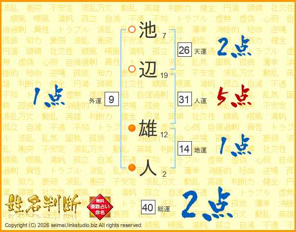 池辺雄人さんの人運は31画の5点!