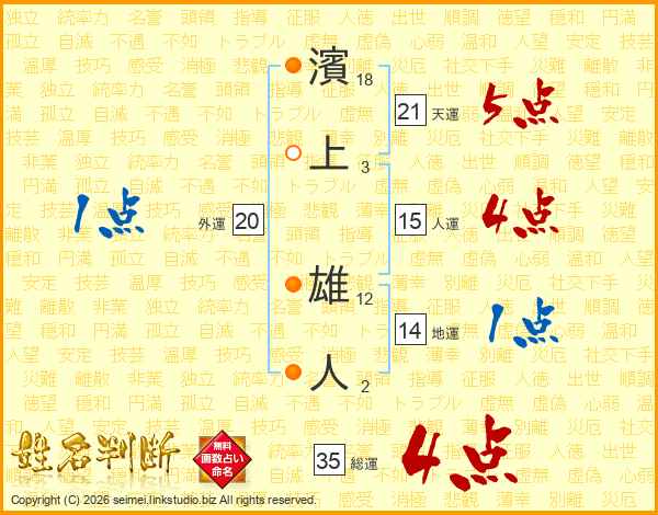 濱上雄人さんの総運は35画の4点!