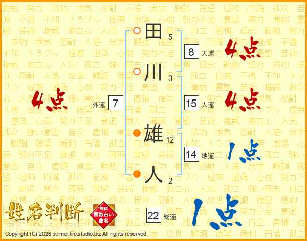 田川雄人さんの総運は22画の1点!