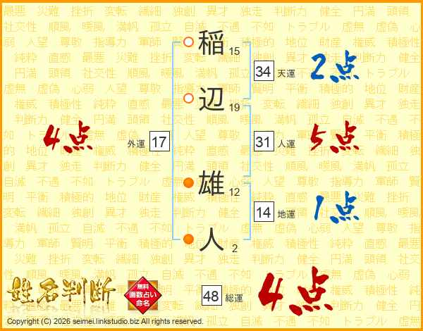 稲辺雄人さんの総運は48画の4点!