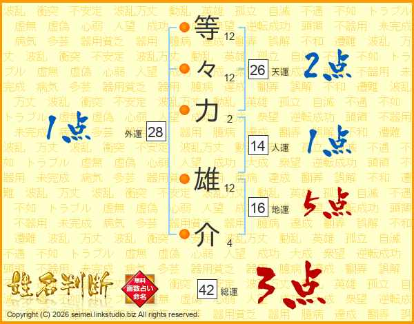 等々力雄介さんの天運は26画の2点!