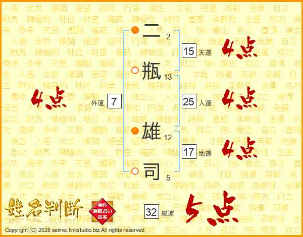 二瓶雄司さんの総運は32画の5点!